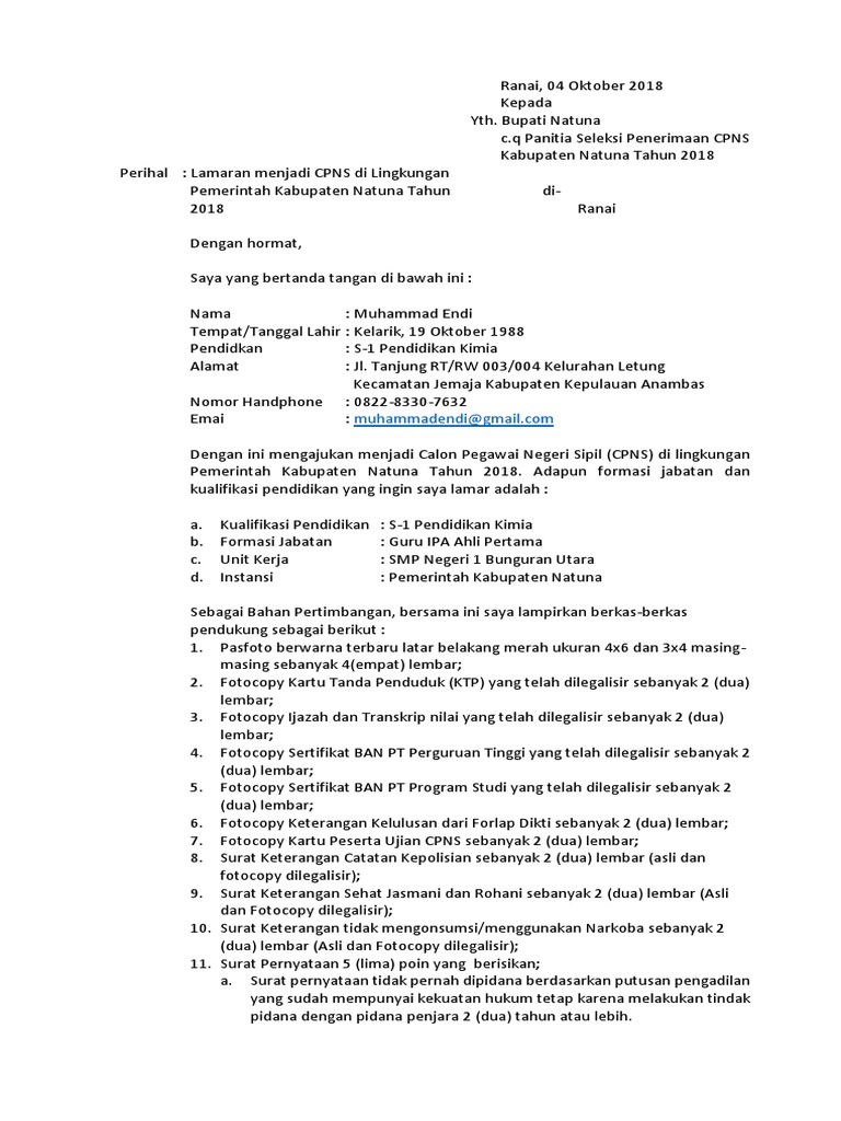 Pada dasarnya membuat surat lamaran kerja tidak sesulit yang dibayangkan, dengan format. Fotokopi surat pengalaman kerja di puskesmas randudongkal. Surakarta, 7 juni 2016 kepada yth. Surat lamaran merupakan surat permohonan yang dibuat oleh para pelamar pekerjaan atau pencari kerja, kemudian dikirimkan terhadap suatu badan usaha maupun instansi untuk mendapat pekerjaan maupun jabatan berdasarkan lowongan pekerjaan ditawarkan. Surat lamaran kerja cpns harus diperhatikan dengan baik, pastikan untuk melakukan cek ulang sebelum upload.