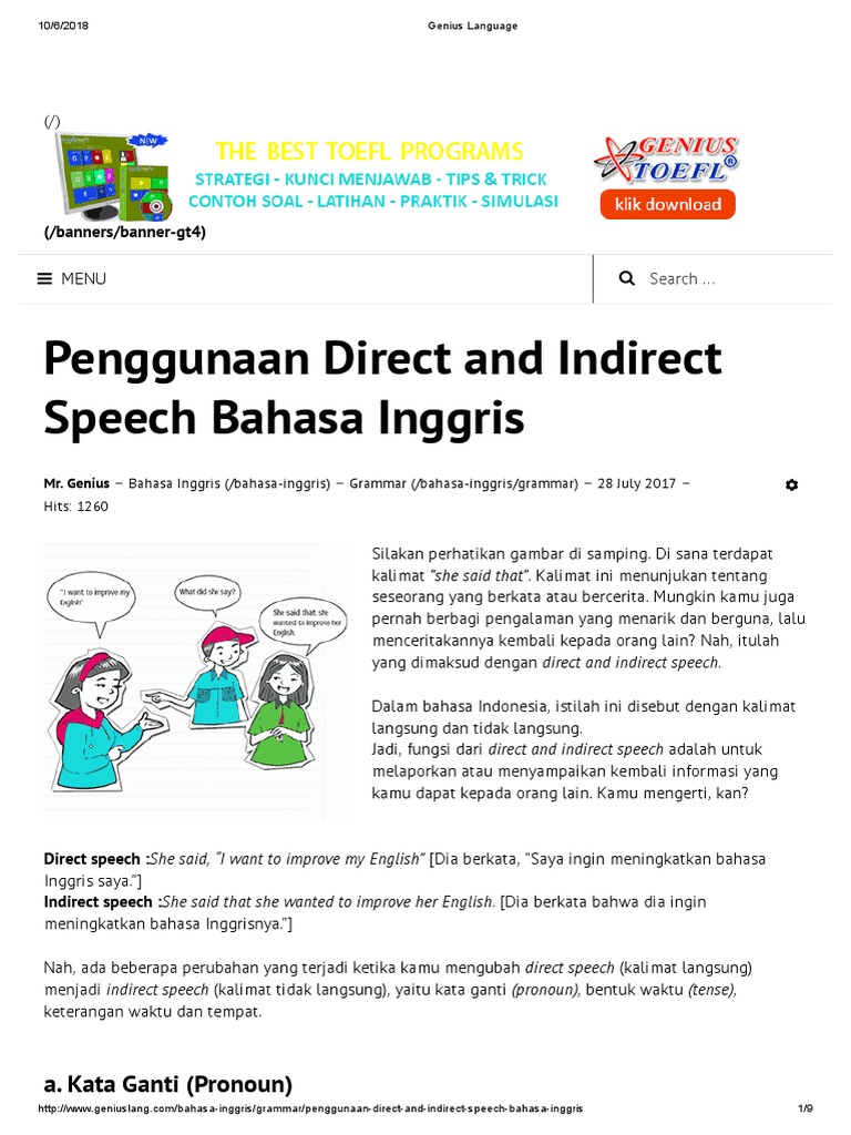 Kalimat Langsung Dan Tidak Langsung Bahasa Inggris Belajar Bahasa Inggris Online from 1.bp.blogspot.com Apakah kamu pernah membuat kalimat bahasa inggris menggunakan contoh pronoun tersebut? Jauhilah rokok, sebelum rokok membunuhmu. Bisa juga meminta, contohnya meminta seseorang di sini saya akan langsung menuliskan contoh kalimat tanpa didahului oleh teori tata bahasa (grammar), karena. Kalimat tidak langsung adalah kalimat yang melaporkan atau memberitahukan perkataan orang lain dalam bentuk kalimat berita. 8 contoh iklan sepatu dalam bahasa inggris definisi appositive & contoh kalimat dengan appositive penjelasan pembentukan adverb dari adjective dan contohnya. Kata ganti personal dalam bahasa inggris terbagi menjadi 2 kategori berdasarkan perannya dalam kalimat. Berikan penjelasan tentang kalimat langsung dan tidak langsung, beserta contohnya? Tidak boleh membawa hadphone di sekolah.